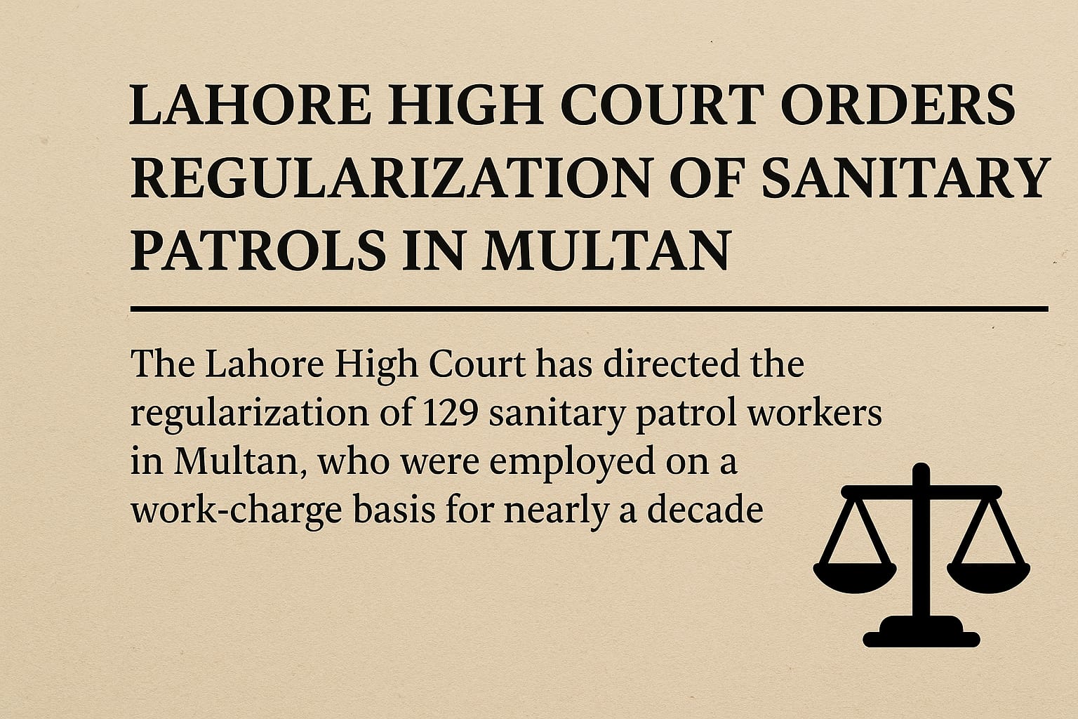 Background In a significant decision, the Lahore High Court, Multan Bench, has directed the regularization of 129 sanitary patrol workers—both male and …